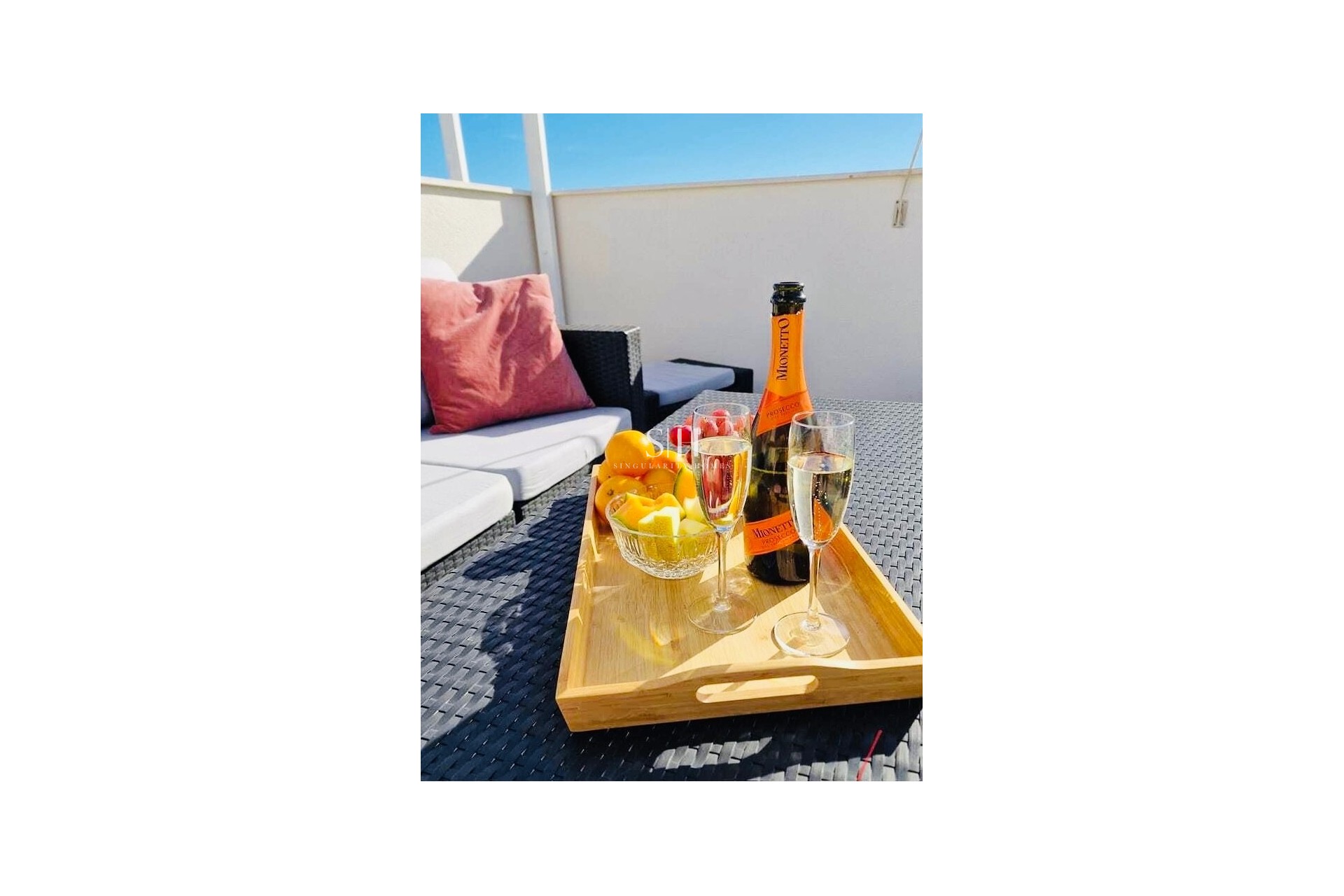 Het appartement is op het zuiden georiënteerd, waardoor het de hele dag door veel zonlicht ontvangt. De woonkamer heeft toegang tot een mooie balkon, en een trap leidt naar het 80 m² grote dakterras – de perfecte plek om te ontspannen of gasten te ontvangen. Op het dakterras is er een pergola, een bank, een tafel en ligstoelen, die een ideale buitenruimte creëren.