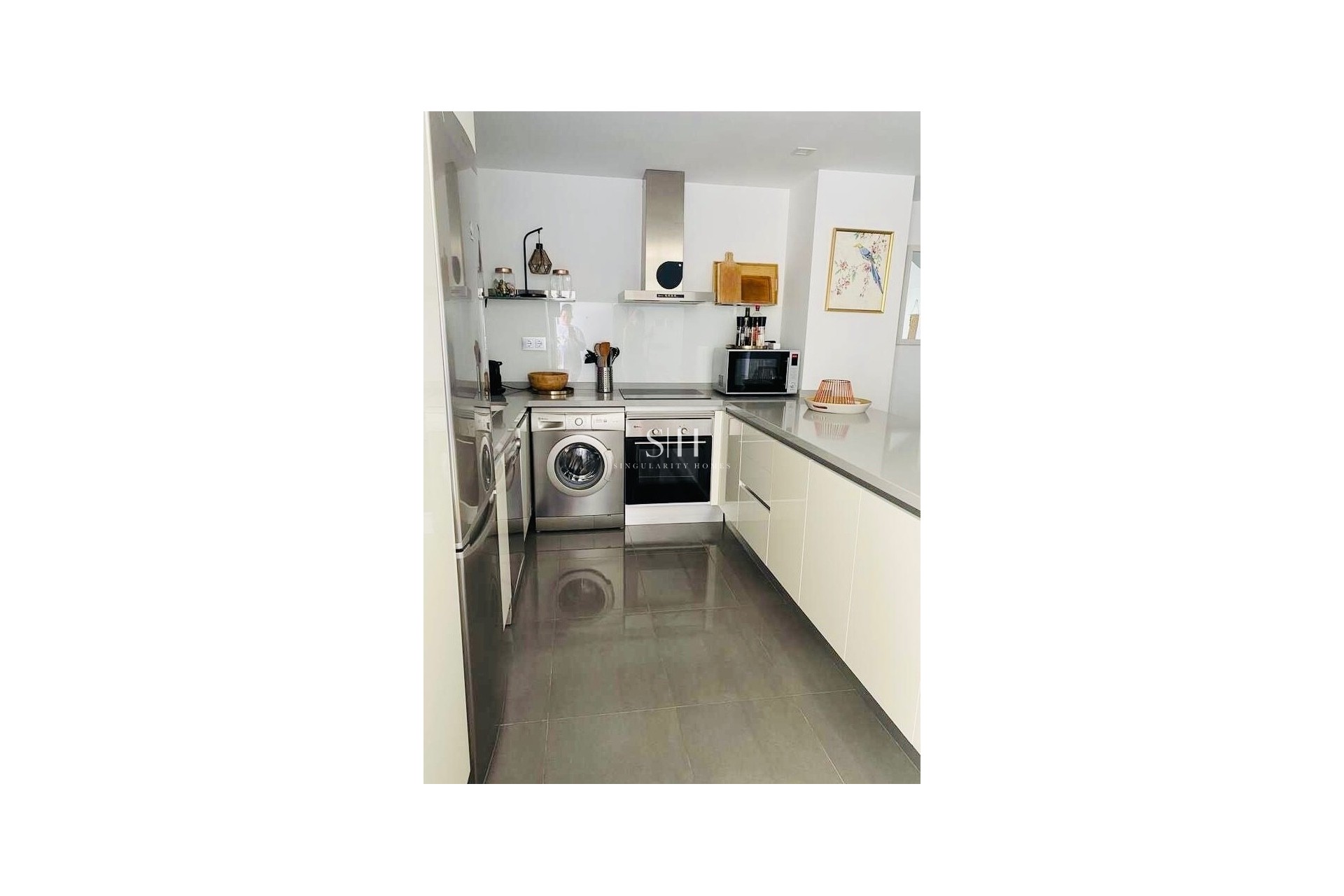 Het appartement wordt volledig gemeubileerd en uitgerust verkocht, inclusief servies, gordijnen, bedden, een nieuwe bank in de woonkamer en een nieuwe wasmachine. Het balkon is ook ingericht met tafel en stoelen, waardoor het een comfortabele buitenruimte biedt om van de frisse lucht te genieten.