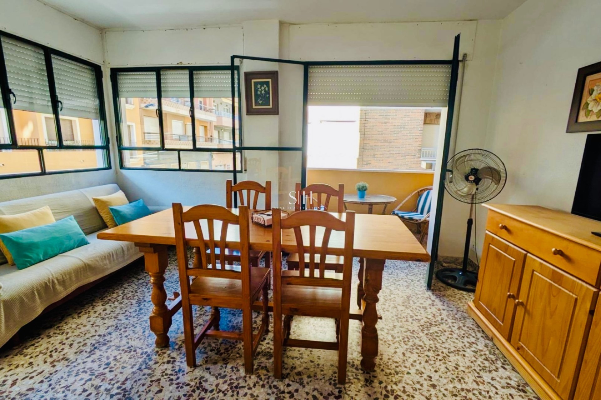 1To piękne mieszkanie o powierzchni całkowitej wynoszącej metrów kwadratowych znajduje się w okolicy miasta Torreviejai oferuje ogólną liczbę sypialni łazienki i toalety Mieszkańcy mogą również korzystać z windy balkonu tarasu by cieszyć się śródziemnomorskim klimatem Jego centralna lokalizacja umożliwia dostęp do autobusów centr handlowych placówek medycznych szkoły parki oraz pobliskich supermarketach Ponadto miesięczne opłaty rządza wspólnotowe wynoszą jedynie sto Euro To unikalna okazja na zakup przestronnego domuz bliskości wybrzeża